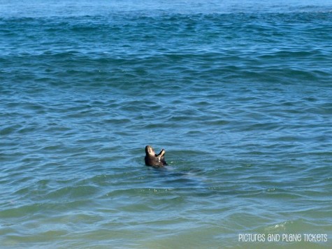 Little did I know (or realize) that Mr. Sea Lion had the same idea. As I was snorkeling, I looked over to the general area where I last saw the sea lion and I could no longer see him on the beach. I looked in the water towards the direction I thought the sea lion might be and I couldn’t see him in the water, either. It was at this time that I looked towards my (now) husband and he looked extremely anxious as he was nervously waving me in. Wondering what was going on, I slowly swam to the beach and asked him what he needed. He explained that the sea lion was swimming right behind me and he was worried that something bad might happen. Maybe the sea lion would be too curious… or would want to play… or to be too aggressive… It didn’t help that the sea lion barked a few times (I can’t believe I didn’t hear him):