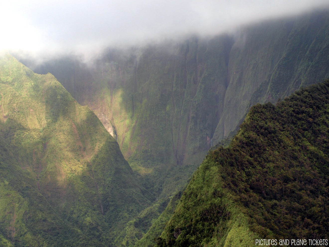 Next, we flew into the “Grand Canyon of the Pacific”, also called Waimea Canyon. The rust colored rock formations plunging 2,000 feet at its deepest part, was a sight to behold.
