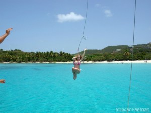 After we had enough time to snorkel in the water, Captain Mike took us to Coki beach on the eastern end of St. Thomas. This was when he surprised us by making a rope swing from one of the ropes on the sail. With a little push from the Captain we were able to swing clear out over the crystal clear blue waters and plunge into the depths below. Our Captain was even cool enough to teach me how to do back-flips off of the rope. After only a few times I was successfully doing back-flips off of this amazing sailboat in the middle of the Virgin Islands. (It was AWESOME!)