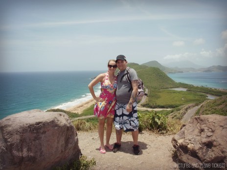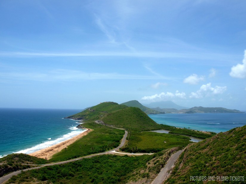 The plan was to spend the day on the southern end of St. Kitts. On our 25-minute drive to the beach, the taxi driver stopped to take our picture at this lookout. On the left side of the photo is the Atlantic Ocean, on the right is the calmer Caribbean Sea. I couldn’t help but wonder what happens when the two bodies of water meet–obviously nothing too fabulous, or else there would be breathtaking photos like this one taken in the Gulf of Alaska. I have seen many beautiful photos of the St. Kitts lookout on the internet, but to stand there and witness it with my own eyes was a different experience. It was beautiful.