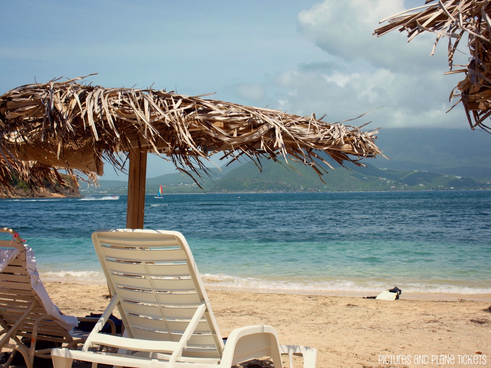 We arrived at Banana Beach, on the southern end of the St. Kitts Peninsula, to relax in the Caribbean sun for the day. We rented beach chairs and laid under umbrellas made from real palm leaves. I’ve always wanted to lay under a real palm umbrella. 🙂