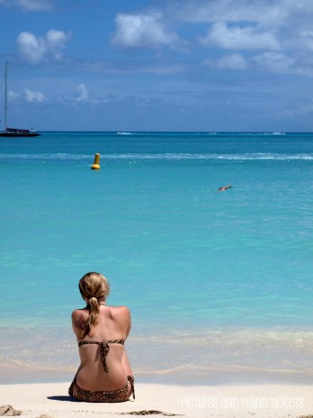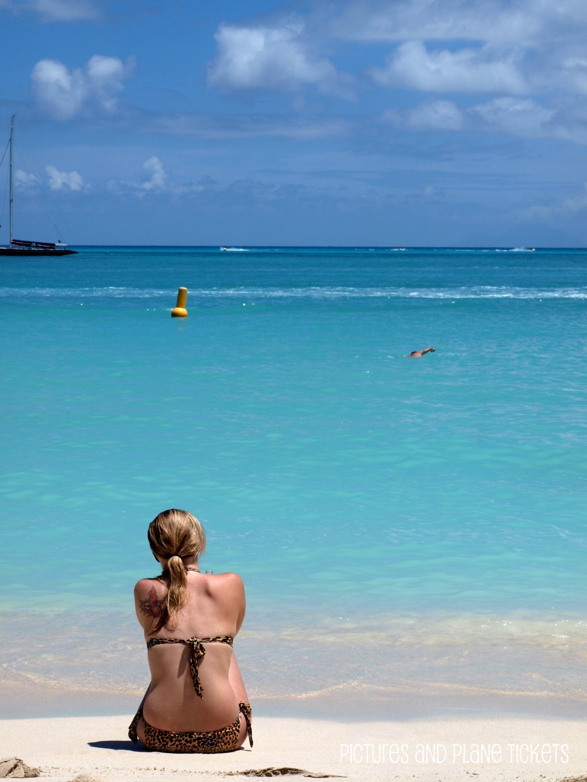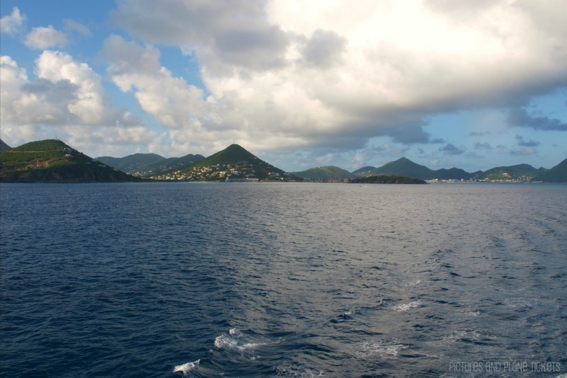 Even though we were right in Phillpsburg, the capital of St. Maarten, the beach and surrounding mountains were beautiful. Small homes and structures dotted the green hills above the ocean, and seeing more mountains behind the close hills, left me with a sense of wanting to explore more of the island. The water was the prettiest shade of blue, it wasn’t as clear as I’d hoped, but the color was magnificent. We rented beach chairs, bought a bucket of Carib beers, and relaxed the day away.