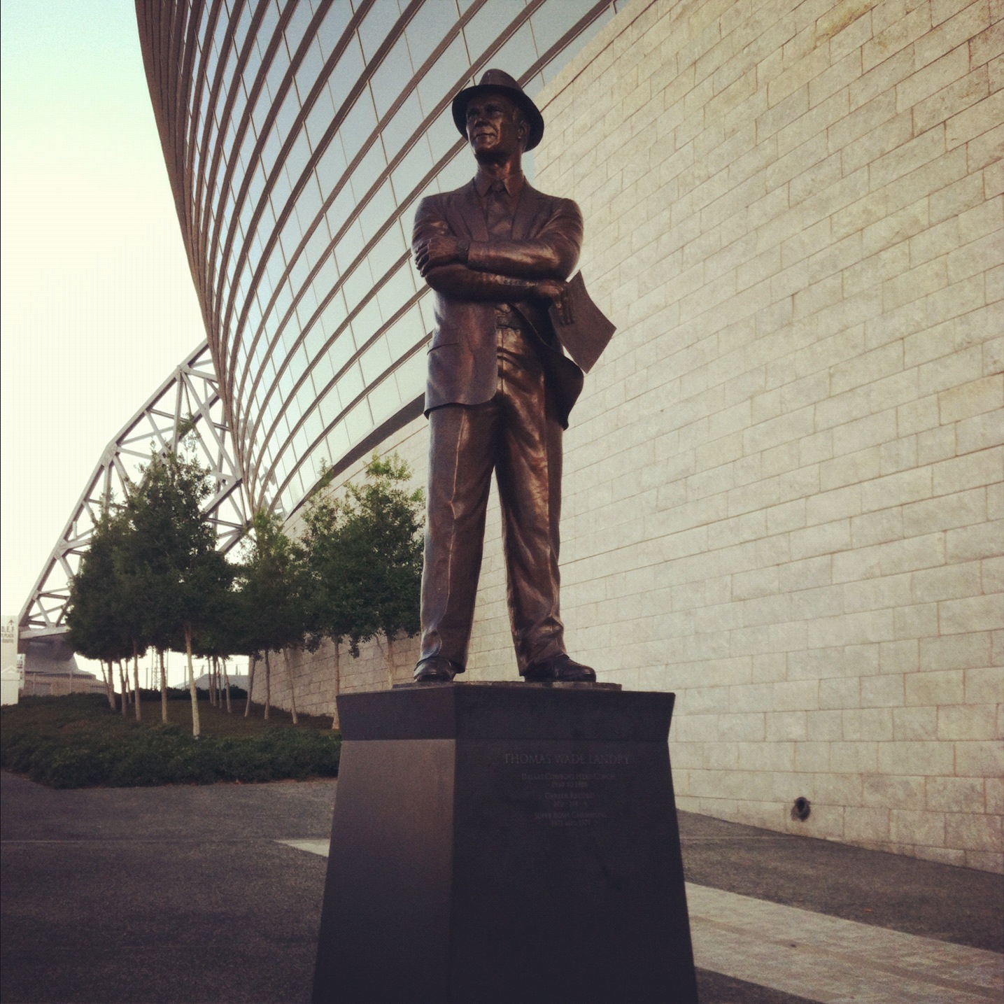 Our hotel was located less than a mile away from Cowboys Stadium, so as soon as we dropped off our bags we went to check out Jerry’s Palace. The city of Arlington is beautiful; the tree-lined streets were impeccably clean and some streets were even named after sports legends, like: Tom Landry Freeway, and Nolan Ryan Expressway (Rangers Ballpark is literally right down the street from Cowboys Stadium). As soon as I caught a glimpse of the beautiful silver dome, a smile spread across my face. That’s when it really hit me: We were here to watch the Dallas Cowboys.