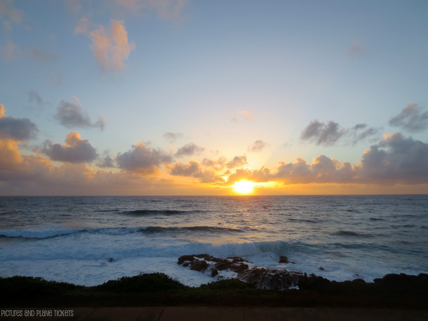 One of my favorite things about our trips to Kauai is waking up early to see the sunrise. It is always so quiet and serene. The sound of the waves and the sea breeze bring immediate calmness, and the anticipation of feeling the warm sun rays against your face and skin draws closer as the sky slowly lightens. It’s just you and your thoughts in that quiet moment before another fun day in Paradise.