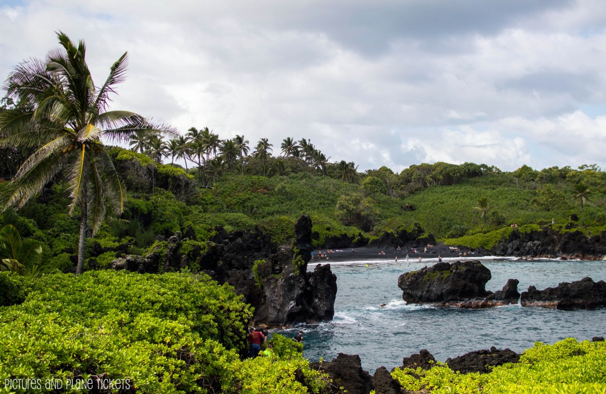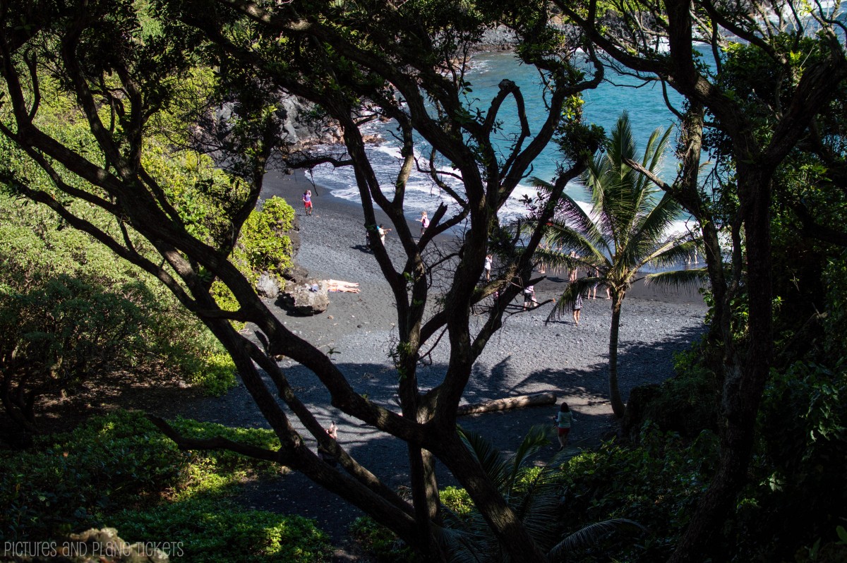 A short hike down to the beach will reveal the trifecta of a perfect beach in paradise: Black Sand. Blue Ocean. and Palm Trees.