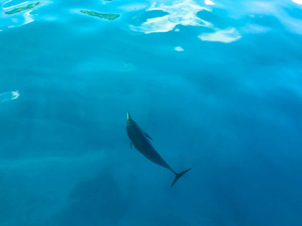 We cruised through the electric-blue lagoon and saw a pod of spinner dolphins as they surrounded our boat and showed off their acrobatic skills. Romain excitedly explained that dolphins are not usually spotted in the lagoon surrounding Mo’orea, so it was an extra special day. (Maybe it was a little presumptuous, but I considered it another Mo’orea birthday present especially for me). 😉