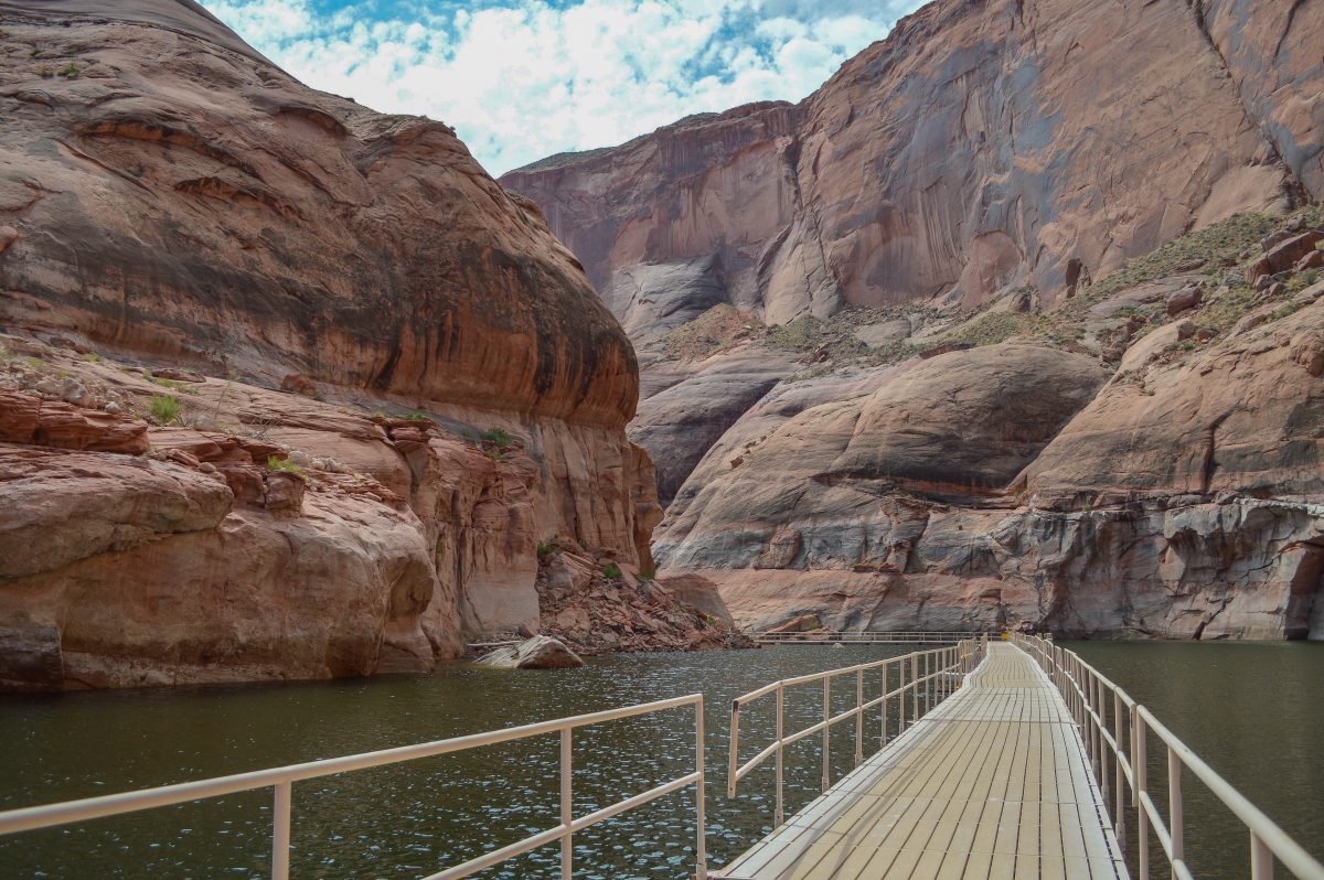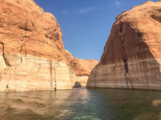 The Rainbow Bridge Boat Tour takes you on an incredible 50-mile journey along Lake Powell. You’ll cruise by dominant vertical cliffs rising high up out of the water, view long stretches of remote beaches, wave at all of the friendly boaters who wave back as they pass, and snake your way through the vast system of canyons that create the lake known as Lake Powell. (Fun fact: Lake Powell isn’t actually a lake. It’s one of the largest man-made reservoirs in the U.S. thanks to Glen Canyon Dam).