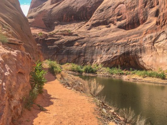 And nestled into one of those discreet side canyons is that famous sandstone Rainbow withstanding time. After a morning of cruising the lake, we arrived at the Rainbow Bridge boat dock shortly after 10:30. The 1.25-mile hike (roundtrip) is mostly flat and not too strenuous (even in the hot August heat), however, you’ll want to make sure to bring your hat, a bottle or two of water, and your camera.