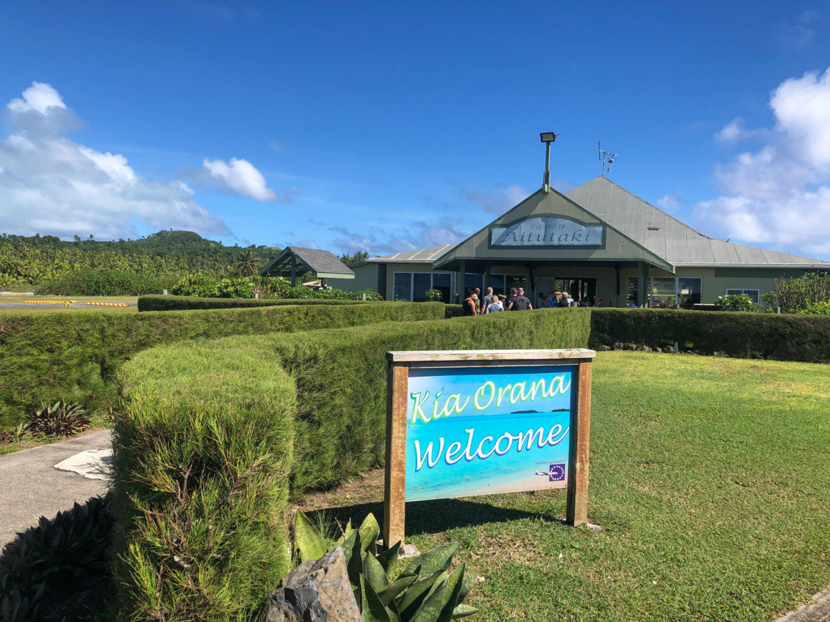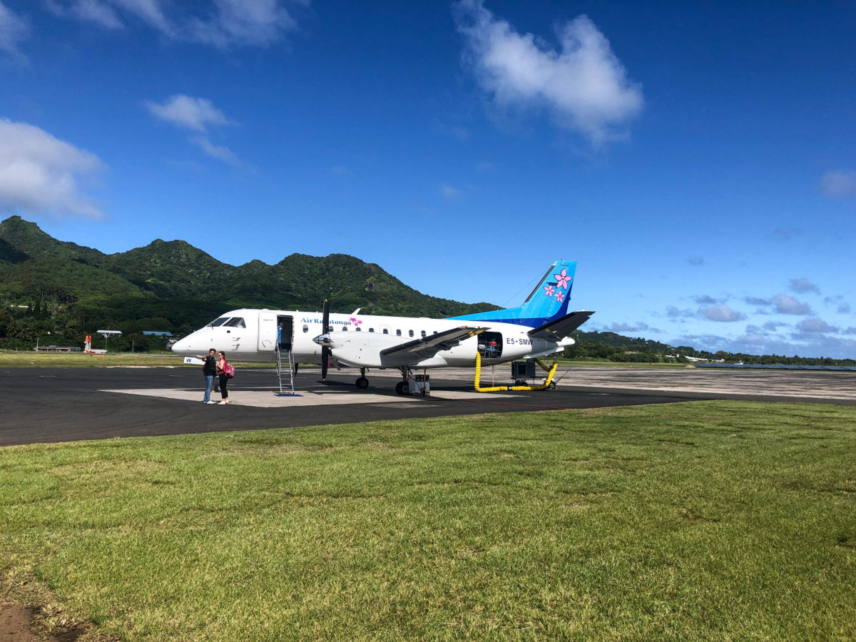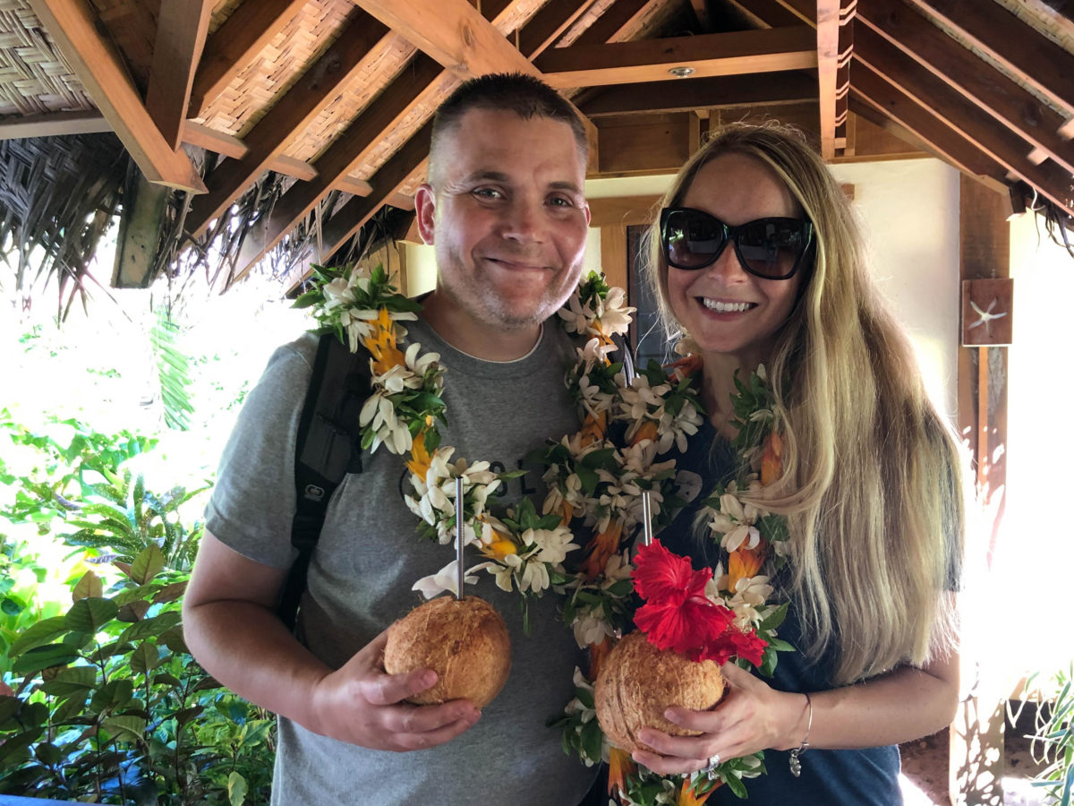 After completing a 10-hour overnight-flight from LAX to Rarotonga International Airport, we hopped on a small 30-seater prop plane for a quick 45-minute flight from Rarotonga to Aitutaki. And as we boarded the flight Cody looked over at me with a look that could only be described as a, “What have you gotten us into?” kind of look. (A look that I’ve seen many times over the years). 😉 Yet before he knew it, we had safely arrived at the Aitutaki Airport ready to begin our anniversary adventure.