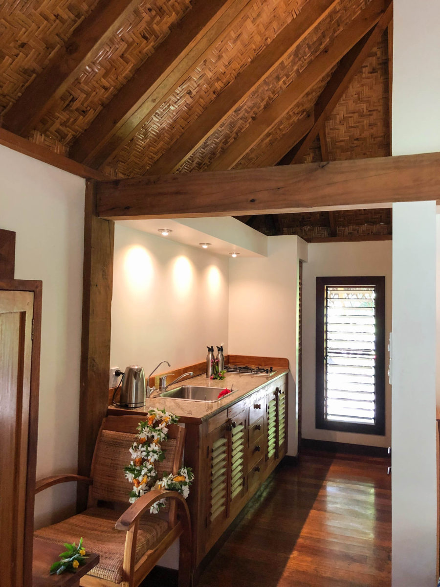 The Etu Moana Resort has ten individual villas nestled within 2.2-acres of lush tropical grounds, and the villas are a perfect blend of “tropical oasis” mixed with modern amenities. Yes, this resort is on a small tropical island, in the middle of the South Pacific, but that doesn’t mean guests have to forgo luxury. All villas have air-conditioning, beautiful hardwood floors, updated kitchens and bathrooms, vaulted ceilings, comfortable beds, large covered patios, and even fancy–and also private–second outdoor showers. Yes, I said a second shower. For each villa.