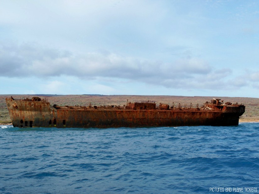 While cruising the north shore, we approached an eight-mile stretch of sand known as Shipwreck Beach. Due to the strong currents and the shallow rocky bottom in this channel, many ships have ran aground throughout Lanai’s history. The beach is completely barren except for the old shipwrecks that dot the shore line, and is only accessible is by boat or by a 4WD vehicle. Captain Dave explained that according to ancient legends, the beach is cursed and evil spirits walk these sands, which is why there are no hotels, condos, or any development along the whole north side of Lana’i. (Folklore and legends, a bunch of “you-know-what”, whatever it is, I enjoyed the story. And it does make you wonder why nobody has built on the beach front property…)