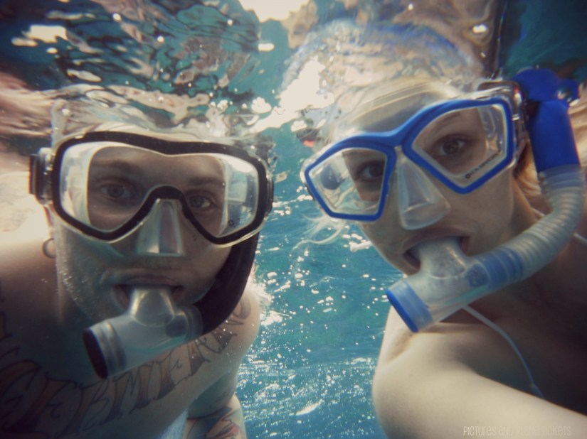 After our not so “dangerous” snorkeling stop at Shark Fin, we were in for the ride of our lives. As the boat turned into the strong waves along the south shore, it almost felt like we were surfing the waves. Waves would splash up and over the bow of the boat and by the end of this stretch of the journey my husband and I were drenched! So much for having the best seat in the house. 😉